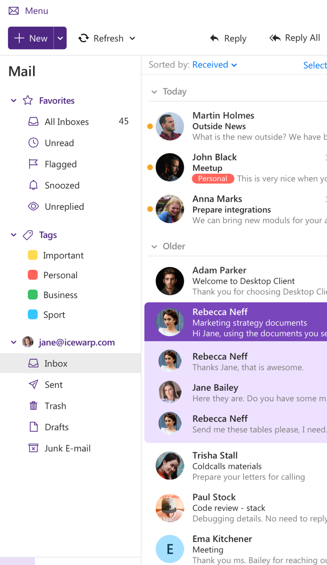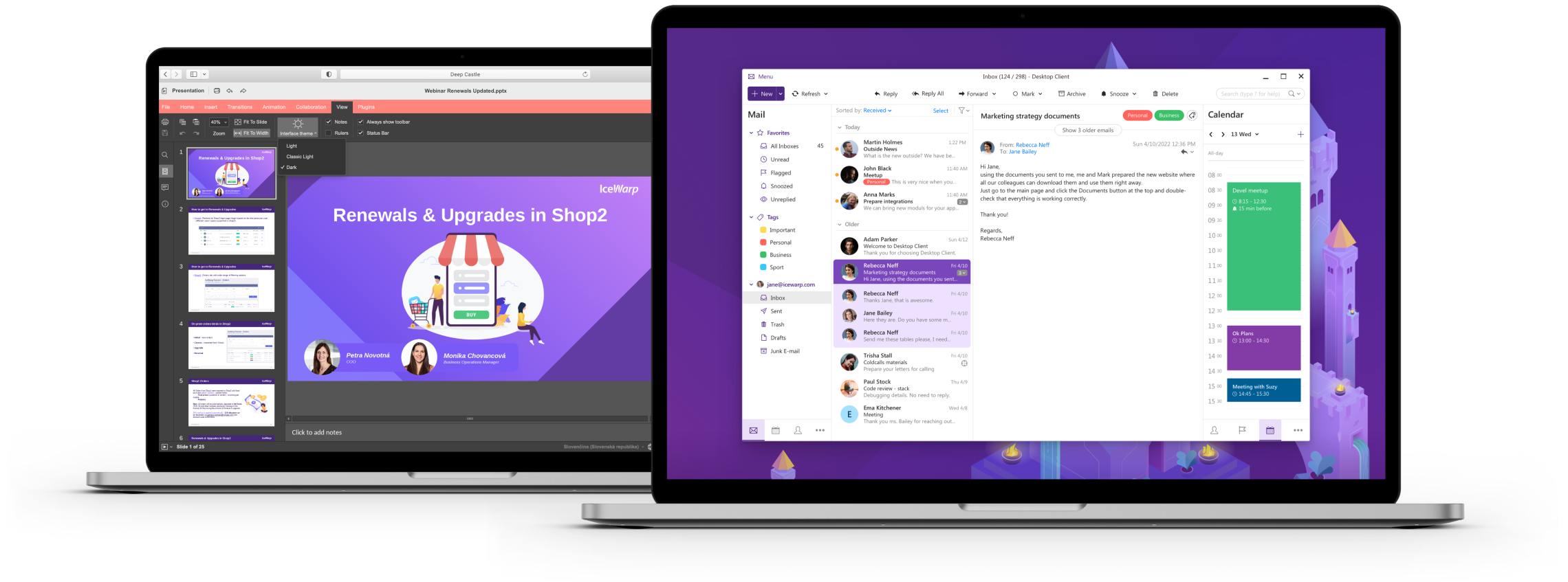 A powerful fusion of email, contacts, calendars, tasks, notes, private chat and conferences. All integrated in a single interface complete with fast full-text search, email encryption with PGP support, interactive messaging history or dark mode.