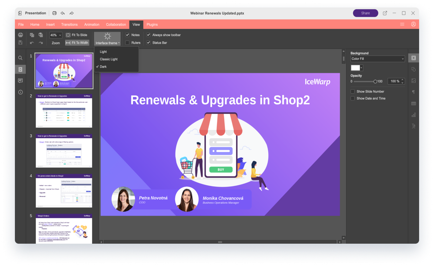 IceWarp Desktop Documents brings all the important features like live font preview, two-column layout, intelligent printing jobs, spell-checker, equation editor, review mode and many other useful tools.